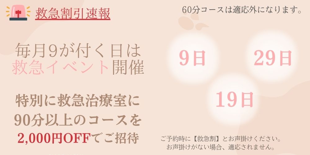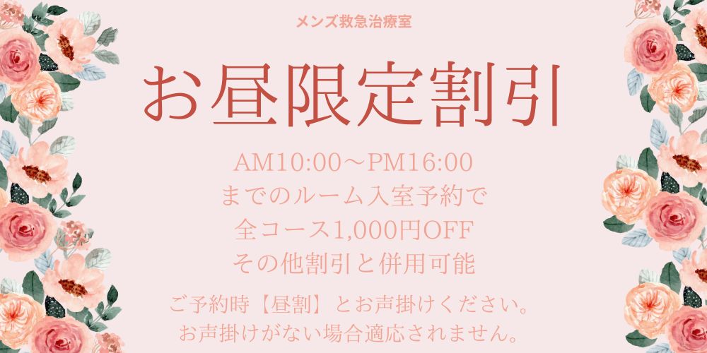 | 当店について | ようこそ、メンズ救急治療室へ。 当店は、一宮駅から徒歩5分、岐阜羽島駅から徒歩5分、場所にある男性専用リラクゼーションサロンです。 仕事や日常のストレス、慢性的な疲労…。 そんな頑張る男性の“疲れの症状”を、ナースをコンセプトにしたセラピストが丁寧にケアいたします。 完全個室で、周囲を気にせずリラックスできるプライベート空間。 まるで救急治療室に駆け込むように、気軽に立ち寄っていただけます。 今日の疲れは、今日のうちに。 心と身体をリセットするひとときを、ぜひご体感ください。 |