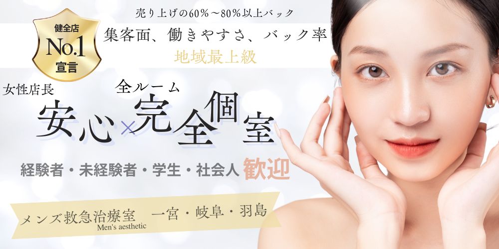 | 当店について | まずはお話しだけでも雑談からゆっくりじっくり大歓迎です♪ いろいろ聞きたいことは根掘り葉掘り何時間でもこれでもかってぐらい聞いてみて納得したらじゃあ働いてみたいなって思ったら働いてみてください♪ 他の一部のメンズエステ店は面接に来たら絶対に帰さない、逃がさない、辞めさせないみたいなひつこいのはまったくありません! 当メンズエステのグループは去る者は追わずで辞めたいときはいつでも好きなときに辞めていただけます。 メンズエステってどんなことするの!? 高収入のバイトをしたいけどメンズエステと飲み屋さんで悩んでいる… わたしにはメンズエステって難しそうで本当にできるか心配… 見た目やスタイルに自信がないから不安… 人見知りでどきどきしちゃうけど大丈夫かな… 他のメンズエステで働いているけど稼げなくて… そろそろ働いているメンズエステが閉店しそうで心配… いつまでにいくら稼ぎたいけど可能ですかねー!? 一宮にちょっと来たときだけでも働けますか!? などなどお気軽にお問合せお待ちしております |